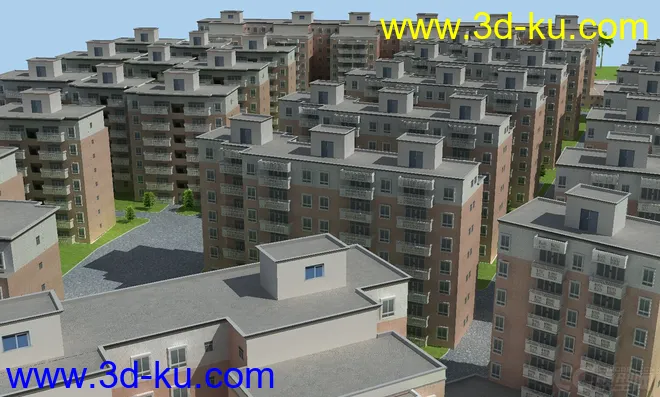 模型名称: 虚拟现实 数字城市完整小区 地形小品设施齐全-3D模型